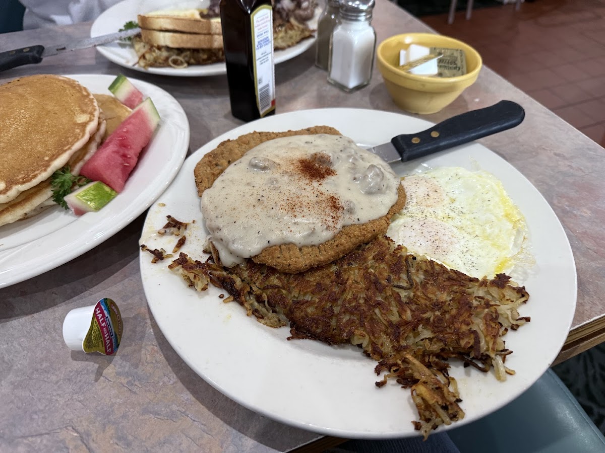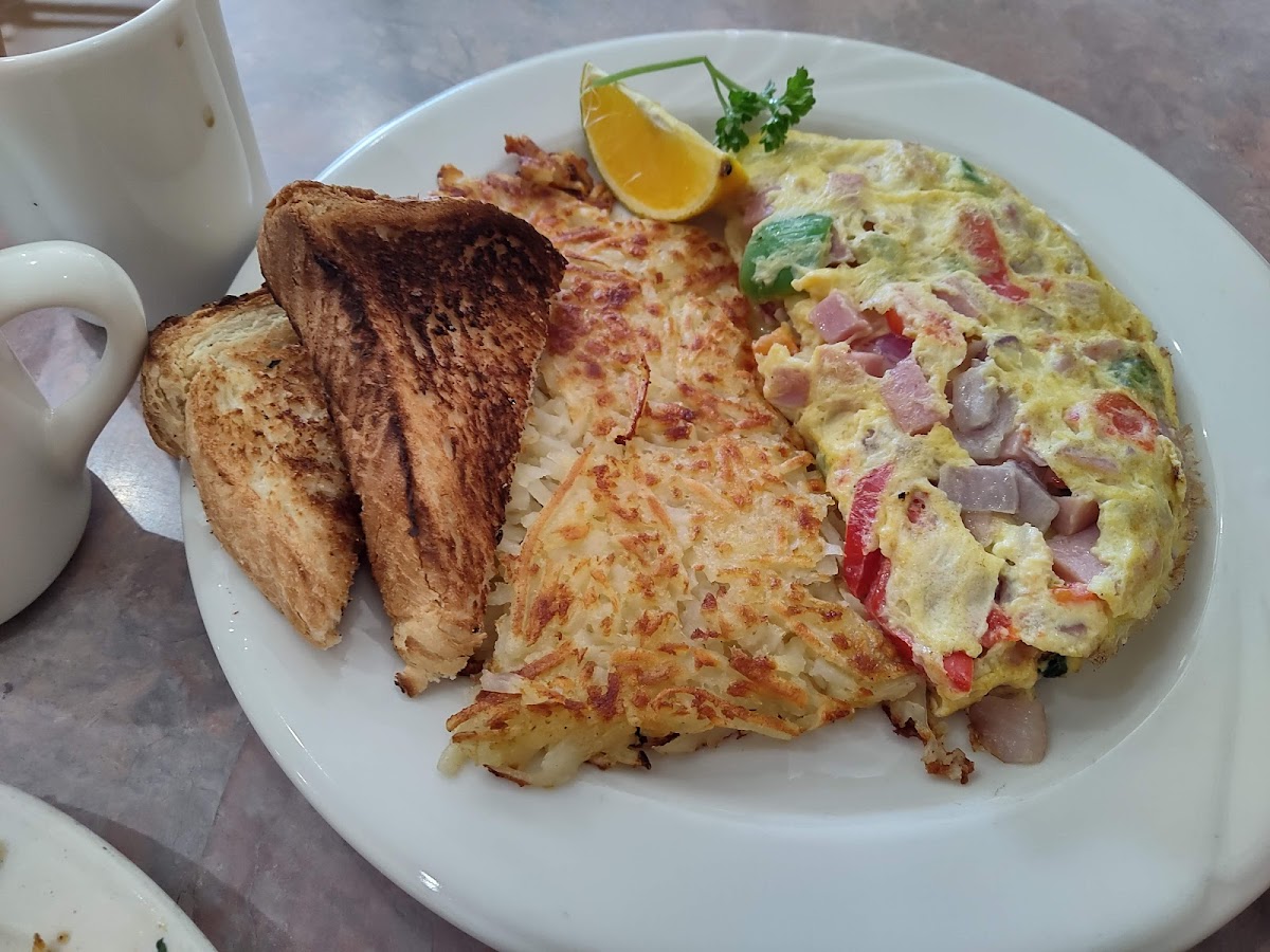 What stands out here is the menu’s commitment to filling, comforting plates that lean towards classic American and southwestern breakfast staples. Dishes like Peg’s Glorified Ham Steak & Eggs—featuring a ham steak topped with caramelized bananas—and the vibrant Huevos Rancheros offer hearty spins on traditional breakfast fare. For a little more variety, options like Chicken Fried Steak with gravy or the Monte Cristo sandwich add midwestern and diner influences that hold up well for lunch crowds.