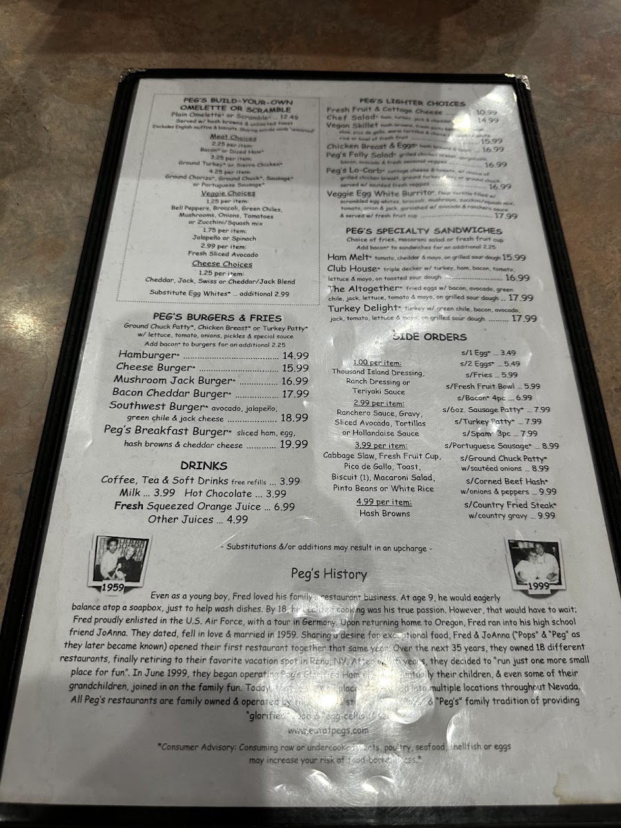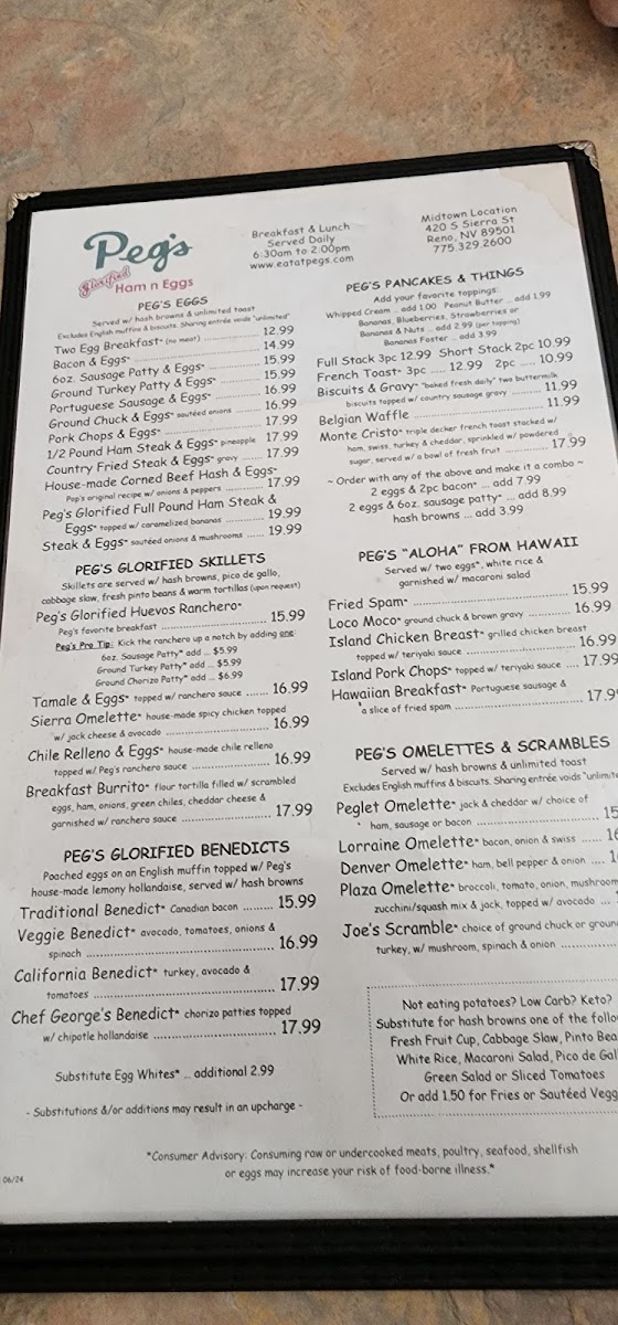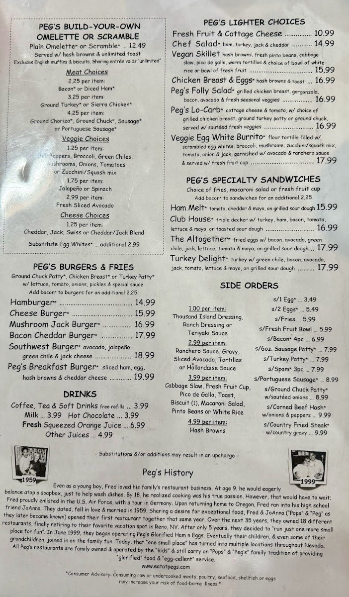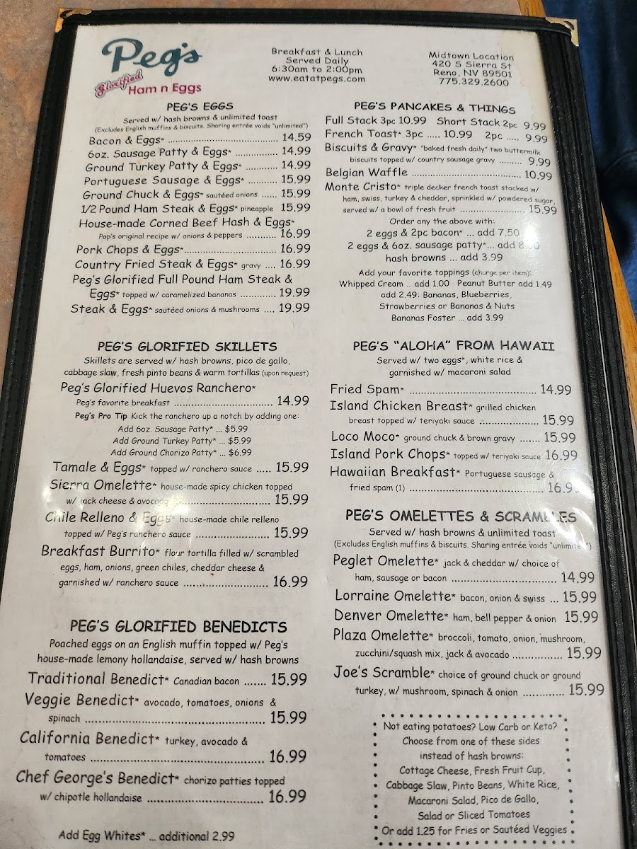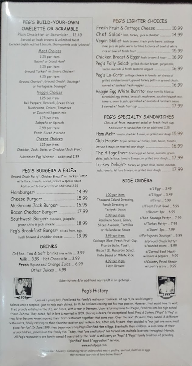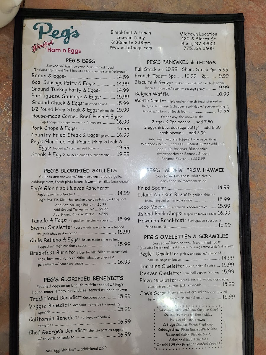 Peg's Glorified Ham n Eggs - S Sierra St Menu